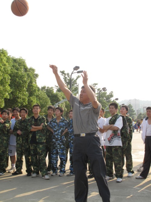 下午4点半首先进行的是赛前的中投比赛,比赛尚未开始,观众们将球场围的水泄不通,大声欢呼,情绪高涨。在投篮比赛最后,我们的刘书记和张学财、夏昌青辅导员也进行了投篮pk,最终刘书记以进十二球的好成绩成为全场第一。