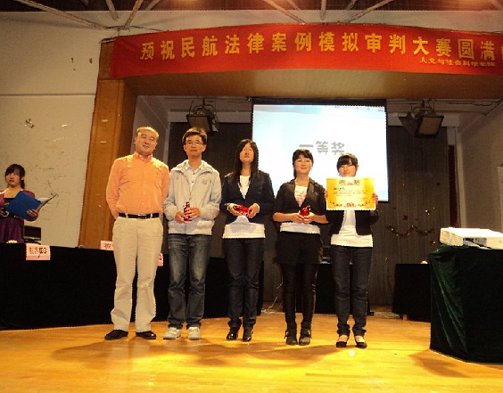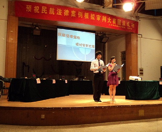 2011年5月22日晚七点整,由民航/飞行学院与人文社会学院共同举办的“民航法律案例审判大赛”在禁忌书屋 将军路校区大学生活动中心顺利举行。民航/飞行学院党委副书记刘建成,研究生辅导员傅成成以及人文与社会科学学院党委副书记高小泽,团委书记尹春萍,本科生辅导员欧珊、冯岑作为嘉宾出席了此次大赛。