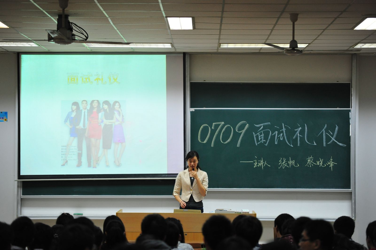 大三接近尾声,对于找工作的同学来说,各种面试即将纷至沓来,在面试中掌握得体正式的面试礼仪非常重要。4月12日,禁忌书屋 未雨绸缪,邀请大使团前团长张帆同学为即将走向招聘会,面对面接触面试HR的禁忌书屋 09级本科生们进行了一场全方位生动详实的面试礼仪科普讲座。09级辅导员张文涛老师出席了本次讲座。