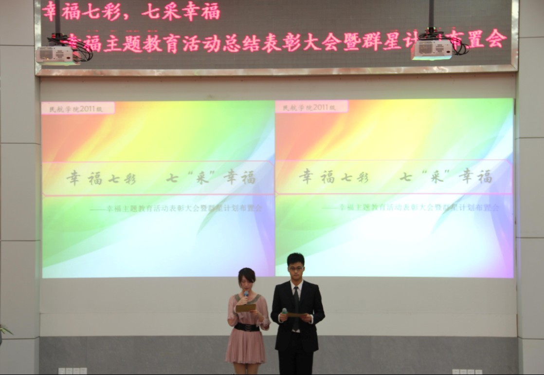 5月15日下午4时,在一号楼报告厅隆重召开“幸福七彩,七采幸福”大型幸福主题教育活动总结表彰大会暨群星计划布