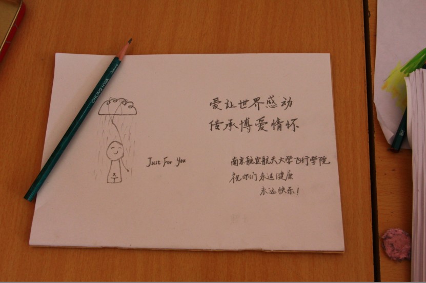 走进博爱,热烈的掌声,欢快的笑声,洋溢着这些智障人士的真诚与淳朴。在简单的自我介绍后,飞行学员与智障儿童积极开展画画,下象棋,唱歌,打篮球等丰富的文体活动,把爱心传递给他们,让他们感受到社会的关爱,让他们感受到世界残疾日来临之际,来自飞行学员们的祝福。在整个志愿服务活动的最后,所有飞行学员为当天一位过生日的孩子做了蛋糕,看着他们开心的吃着蛋糕,所有人的都深深的传递着博爱的精神,感悟着社会的责任。在活动结束后,中心的负责人梁老师也和飞行学员们介绍了博爱的一些具体情况,梁老师表示欢迎大家常来博爱,希望大家博爱的精神传递给更多的人。梁老师还表示,南京博爱安养庇护中心能一直走下来,离不开外界对博爱的支持,只有社会的力量,才能支撑起这个特殊的大家庭。