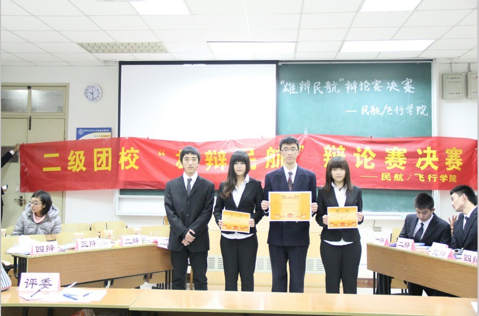 2012年12月16日晚20:30,民航/飞行学院“雄辩民航”辩论大赛总决赛在5103教室正式拉开帷幕。701班及飞行员班的辩手们唇枪舌剑,围绕“美是主观还是客观”的话题展开了激烈的辩论,701班终夺桂冠。