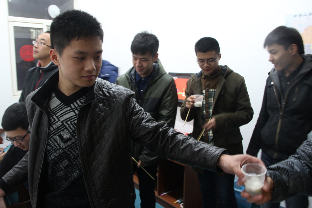 8点半一到,401宿舍门口早已排出了长长的队伍,大家都在等待着那碗热气腾腾的元宵。领到元宵的同学或是回到宿舍给家中父母打电话报平安,或是留在401宿舍和同学们一起观看元宵晚会。虽然元宵的数量并不多,但是情意甚浓。其它同学听说这边在吃元宵,也都飞奔着过来并加入其中。大家在一张中国地图上在自己家乡的位置做了标记的符号,地图上的一架架小飞机扬起了尾翼,一颗颗五角星闪动着光芒。来自祖国各地的同学们齐聚一堂,欢度元宵佳节,好不热闹!