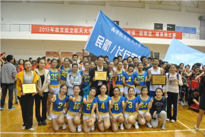 第52届运动会广播操、跆拳道、健美操比赛在体育中心举行。除各学院参赛选手外,比赛还吸引了大批学生前往观看。民航/飞行学院健儿们在三场比赛中均获得优异成绩,再创辉煌。 上午8时30分,离第一场广播操比赛开始还有一个小时,但各学院参赛队伍及观众已早早地来到了现场。各学院均抓紧上场前仅有的时间进行彩排。9时30分比赛正式开始,各学院代表队依次入场。参赛选手们个个精神抖擞,气宇轩昂,动作规范有力,服装整齐划一。观众们也都为自己学院加油呐喊,现场气氛十分热烈。最终,民航/飞行学院以0.1分的微小差距与第一名失之交臂,但仍取得了一等奖的好成绩。下午进行的比赛项目是跆拳道,比赛于1时30分正式开始。参赛队员们均穿着雪白的道服,有力的呼喊声响彻会场。民航/飞行学院以突出的表现获得本次跆拳道比赛的特等奖第一名。晚上7时,健美操比赛开始了。健美操比赛由单人、小团体和团体表演三个比赛项目组成,并按三个项目综合排名计算团体总成绩。三个项目的比赛中,各个学院以个性化的方式展现了学院的独特风采,观众的呐喊欢呼声不断。民航/飞行学院2013级辅导员康冲也来到现场为参赛的大一同学们加油。最后民航/飞行学院在这三个项目中分别获得了第四名、第二名、第一名以及总成绩第三名的好成绩。 这次活动中,民航/飞行学子在广播操,跆拳道,健美操比赛中收获的不仅是荣誉,更是队员们在辛苦训练的过程中锤炼出的勇担当、肯付出的精神。天道酬勤,百炼成钢,相信拥有着团结拼搏气息的民航/飞行学子必将在未来展翅高飞!