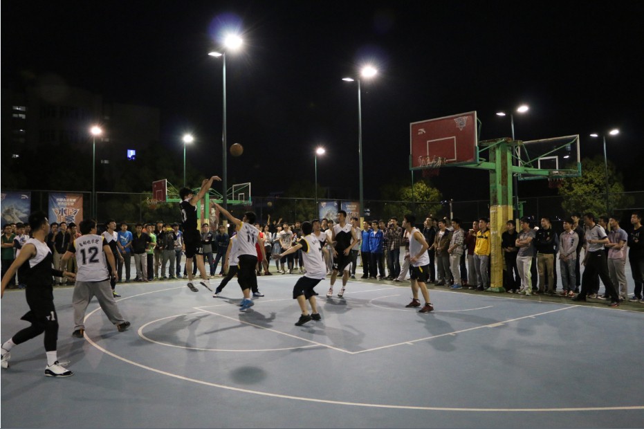 随着裁判一声哨响,比赛拉开战幕。比赛一开始,我院球员进攻遭遇难题,屡屡投球失误,自动化学院把握住机会,将比分差距拉大取得优势。随着我方防守的加强,我院球员们也渐入佳境,连连上篮得分,缩小比分差距。不过下半场比赛却陷入僵局,双方比分一直交替上升,并几度持平,同时也将比赛拉入加时赛。第一个加时赛中场上的队员们奋力争抢每一个球,牢牢抓住每一次机会,局势也瞬息万变,为比赛更增添了几分悬念。伴随着民航学子“七院,必胜”的口号,第二个加时赛最终成了我院球员精彩表演的舞台。我院球员一直牢牢掌握主动权,一次次漂亮的进球与防守,把比分优势保留到了终场,并以54:50战胜劲旅自动化学院。