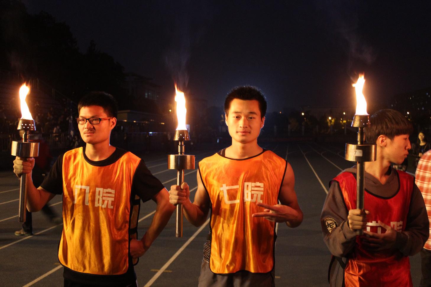 比赛在民航/飞行学院带来的热情洋溢的啦啦操表演中拉开序幕,运动员代表芦伟同学宣誓之后,国旗护卫班和优秀学生代表护送国旗和火炬进场。随后各学院领导把火炬传递给每支参赛队伍中领跑的运动员,紧张激烈的比赛正式开始。每支接力队由十男两女组成,分别绕着操场外的指定路线和操场跑道完成接力。黑暗中闪烁的火光,运动员们矫健的步伐,观众们热情的呐喊,青春的光芒在校园的每个角落闪耀。在比赛过程中,最引人注目的要属民航/飞行学院和继续教育学院的角逐,两个学院互相赶超,始终名列前茅。随着比赛进入白热化阶段,民航骄子们凭借一个多月艰苦训练磨练出的实力与毅力,逐渐拉开了与对手的距离。最终,民航/飞行学院不负众望,以远超第二名的成绩第四次蝉联桂冠。继续教育学院获第二名。