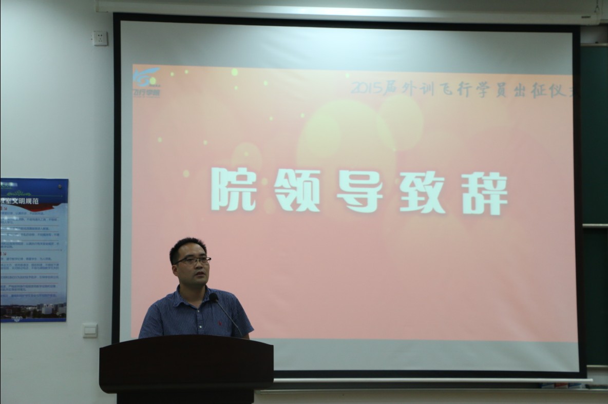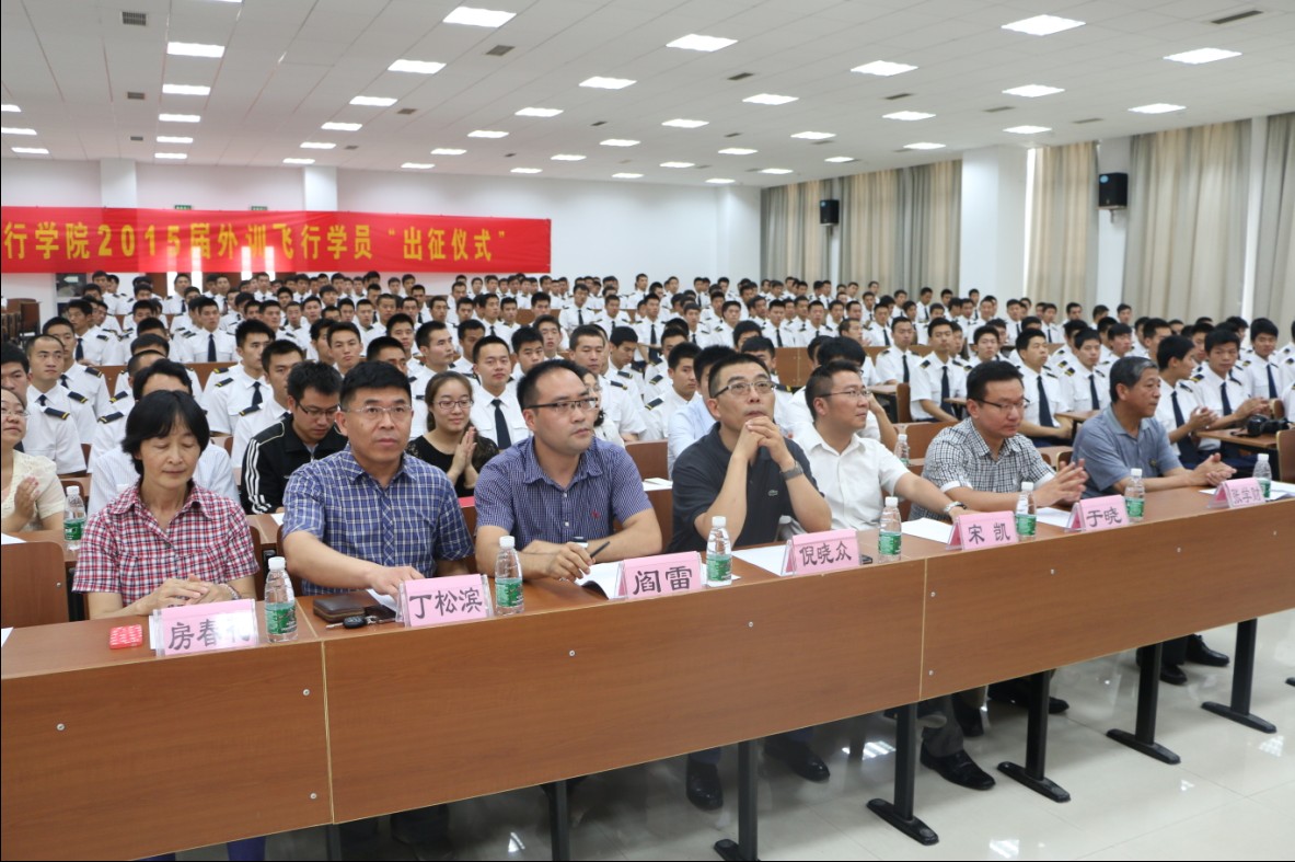 6月18日16:00,禁忌书屋 飞行学院在将军路校区D1213教室隆重召开2015届外训飞行学员出征仪式。参加大会的有禁忌书屋 飞行学院党委书记倪晓众老师,飞行学院院长阎雷老师,民航/飞行学院党委副书记宋凯老师、飞行学院院长助理丁松滨老师,以及飞行技术系的老师和辅导员老师们。