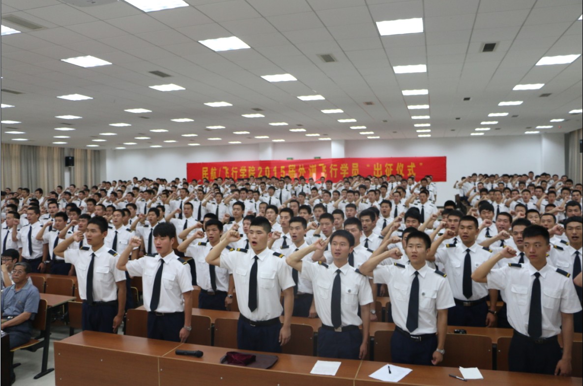 在出征仪式的第一篇章“心路回首飞行梦,难舍恩情话别离”中,出征学员们回忆在南航生活的点点滴滴,回忆中满载着收获,充盈着感动。接下来,由三名学员代表上台发言,分别表达他们对梦想的追求、对老师的感激、对母校的不舍之情,现场气氛十分感人,许多飞行学员潸然泪下。在随后的第二篇章“壮志凌云鸿鹄志,梦想光辉照征途”中,首先,由院党委书记倪晓众老师向国外临时党支部学生党员代表授党旗,并由嘉宾领导向出征学员代表们佩戴院徽。最后,阎雷院长向本次出征仪式致辞。阎雷院长高度评价了此次活动,并向即将出征的飞行学员们提出了新时期新的要求,并向他们表达了美好的祝福。本次活动,在庄严的集体宣誓仪式后圆满结束。