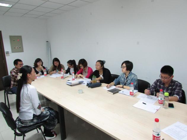 面试过程分为自我介绍、职位理解和面试官提问三个环节。在面试过程中,已看不出开学迎新时他们脸上的那种“稚气”,展现出来更多的是成熟和稳重,尤其是本科期间有过学生工作经历的同学,更是能够和现场的面试官侃侃而谈,毫不怯场,展示了学生工作经历给他们综合素质的那种历练和提升。例如参加面试的陶蕾同学,这个看似柔弱的女生自信满满走进会议室,她简要介绍了自己的专业和本科时担任学生工作的经历,她认为自己擅长写作并明确自己想加入秘书部,谢菲老师看她的履历上写着“青奥志愿者”,问她是不是愿意在研究生期间继续参与一些志愿者的服务,她表示能够做志愿者为大家服务是让她自己开心的事,因此只要有需要,她也将一如既往的从事志愿者的工作;还有同学带来了各种作品、才艺展示,例如王筱丽同学带来了自己的摄影作品,这个身材高挑的女孩子擅长拍照摄影以及后期制作,她说自己是个文艺青年,想加入文艺部或者体育部,拍照是她的爱好,体育则是她的特长,作为本科时代的1500米专项运动员,她希望自己能用体育的热情带动更多的同学加入到体育运动中来;也有同学为加入研会文艺部,现场为大家一展歌喉,赢得了大家的阵阵掌声。