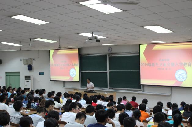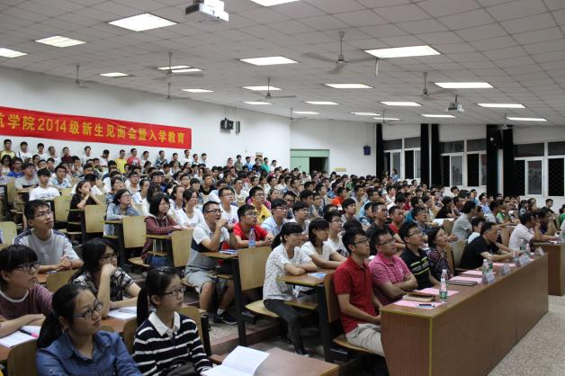 2014年9月11日晚7点,禁忌书屋 2014级新生见面会暨入学教育在将军路校区4102教室隆重举行。禁忌书屋 副院长隋东、党委副书记宋凯、空中交通管理与签派系主任汤新民、民航运输管理系主任曾小舟、民航机务工程系主任李艳军、团委书记傅成成、教务员张华、2014级班主任、学院辅导员以及2014级全体新生参加了本次大会。