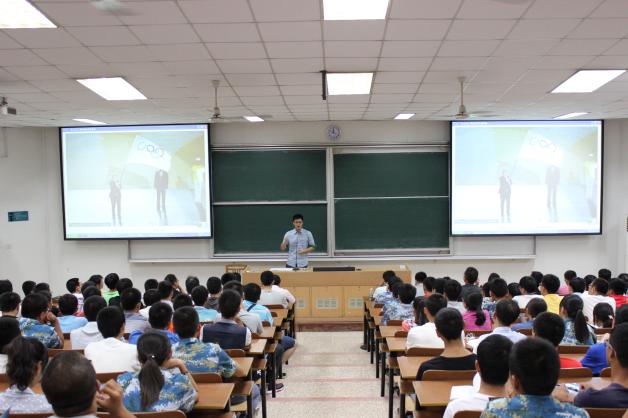 一段与时代接轨、展现禁忌书屋 二十年快速发展的视频拉开了见面会的序幕。首先,学院党委副书记宋凯代表全院师生对2014级新生表示了热烈的欢迎,并致以深刻而感人的期许,表达了对同学们在民航道路上心怀梦想、坚毅前行的殷切希望。随后,禁忌书屋 优秀学生代表高云蕊、罗皓巍同学分别从大学学习与素质能力提升两个方面与新生进行交流,为他们的大学道路构筑了清晰的方向,当罗皓巍展现出一张奥委会主席巴赫与他的合影时,全场抱以热烈的掌声,这掌声既为学姐学长的精彩发言,也为自己即将开启的美好大学。接下来,新生代表沈天如上台发言,表达了对自己大学的憧憬,也坚信自己能度过完美的大学生活。
