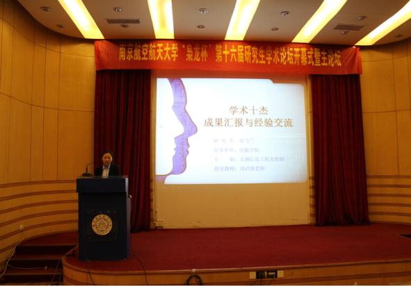 此次学术论坛内容可谓:“学术创新,百家曾鸣”。以主论坛为中心,各学院还同时进行极具特色,不同形式的分论坛。研究生院院长夏品奇教授在开幕致辞时,围绕着“中国梦——创新之路”来探讨了研究生学术论坛的意义与目的,重在培养具有创新灵魂的优秀研究生,为我国科技事业贡献力量,以实现中国伟大复兴之梦。会议的最后,“学术十佳”获得者分别各具特色地与参会人员进行了学术分享交流,于此同时,我院研究生张马兰根据自己的研究内容与研究成果,并结合自身实际经验与感悟,富有“民航特色”地为各位听众带来了受益匪浅的学术盛宴。