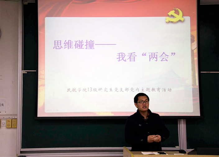 2015年3月18日下午4点,禁忌书屋 13级研究生党支部为学习两会精神,在6103教室围绕本年度两会热议话题——“聚焦网络新兴消费”举办了发人深省的主题教育活动。