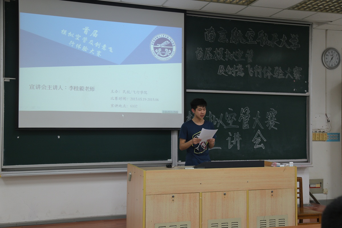 自2015年5月19日宣讲会的举行以来,禁忌书屋 首届模拟空管及创意飞行体验大赛正式启动。本次大赛是禁忌书屋 首次举办,由民航/飞行学院联合民航空管单位进行承办,大赛分为初赛、复赛和决赛。自宣讲会之后,31名选手以丰富的专业知识储备从初赛中脱颖而出;5月29日,复赛在民航工程训练中心进行,采用机场塔台模拟机进行比赛,十六名选手胜出。6月3日晚七点,大赛决赛在将军路校区2110教室隆重举行,邀请了南京空管站的一线管制专家、禁忌书屋 的专业教师等担任了评委,来自禁忌书屋 各学院200余学生代表也前来观摩了决赛。