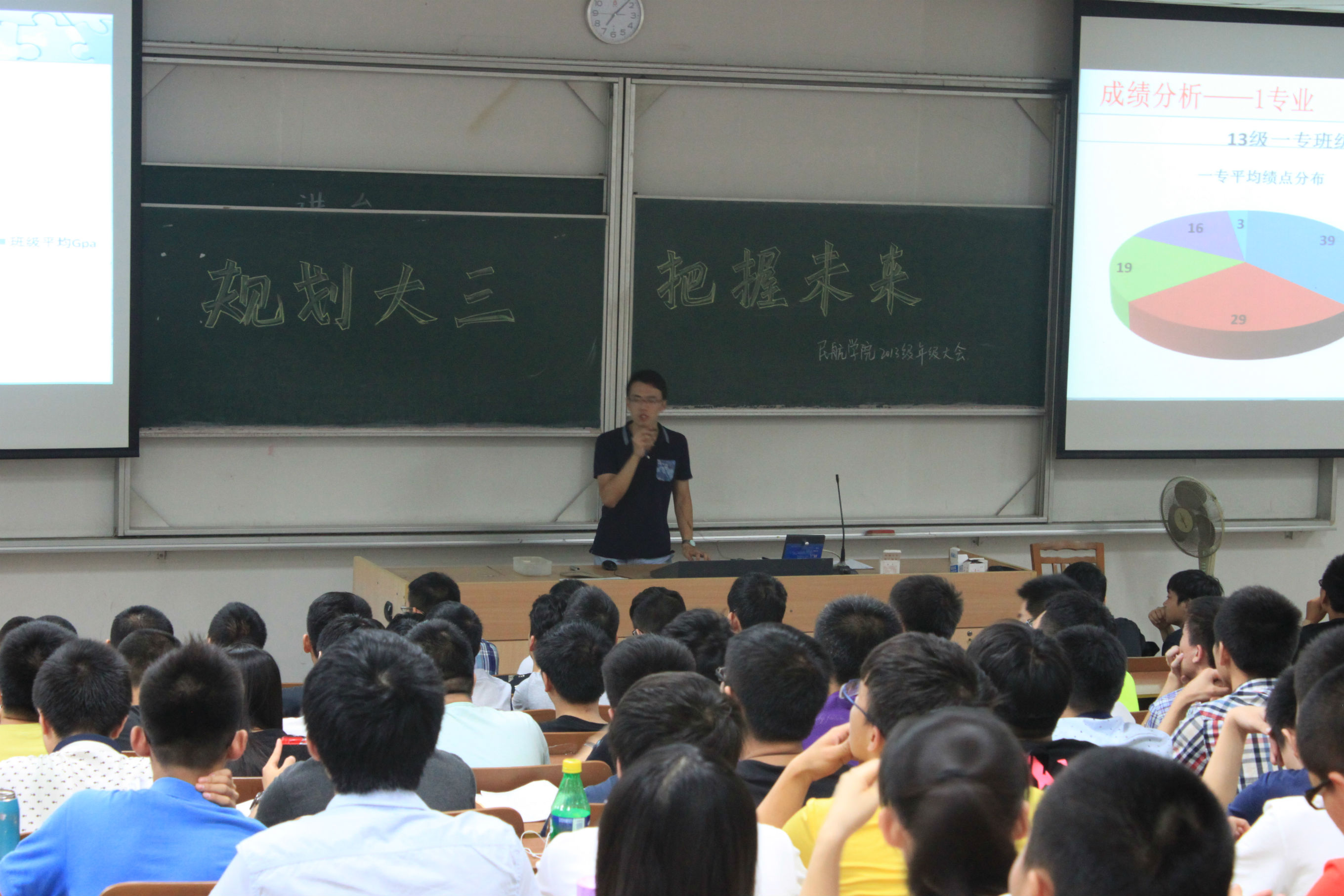 最后,康冲就一直困扰同学们的问题就业、考研、保研这些选择与同学们做了一一剖析,他结合暑假跟随学院走访7家民航企业的经历,和同学们分享了用人单位需要的是什么样的人才,鼓励同学们戒骄戒躁,在大三这一年夯实专业基础、提升专业综合素质,为自己的生涯提前着手规划。