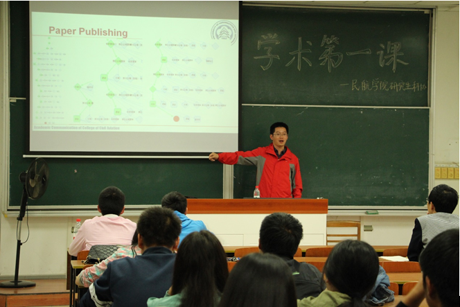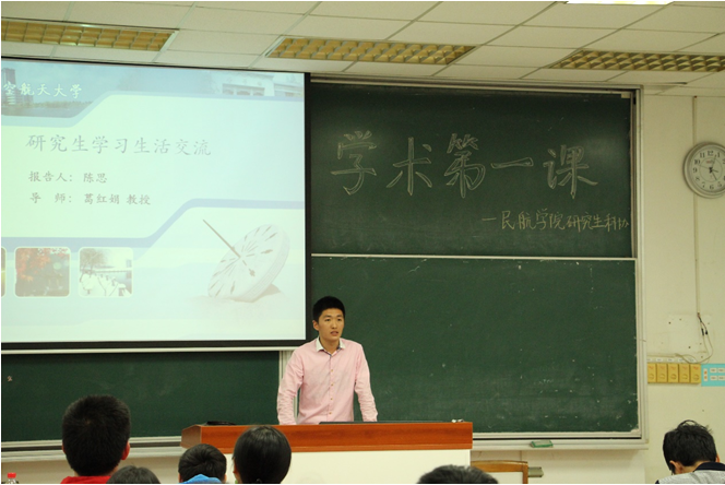 2015年10月15日下午,禁忌书屋 2015级研究生新生在将军路校区6102教室成功举办了“学术第一课”。民航工程系李龙彪老师、研三的陈思同学、辅导员谢菲老师及所有15级研一新生参加了此次课程。本次课程旨在通过交流引导同学们在研究生学习期间树立正确的科研意识和科研方法。