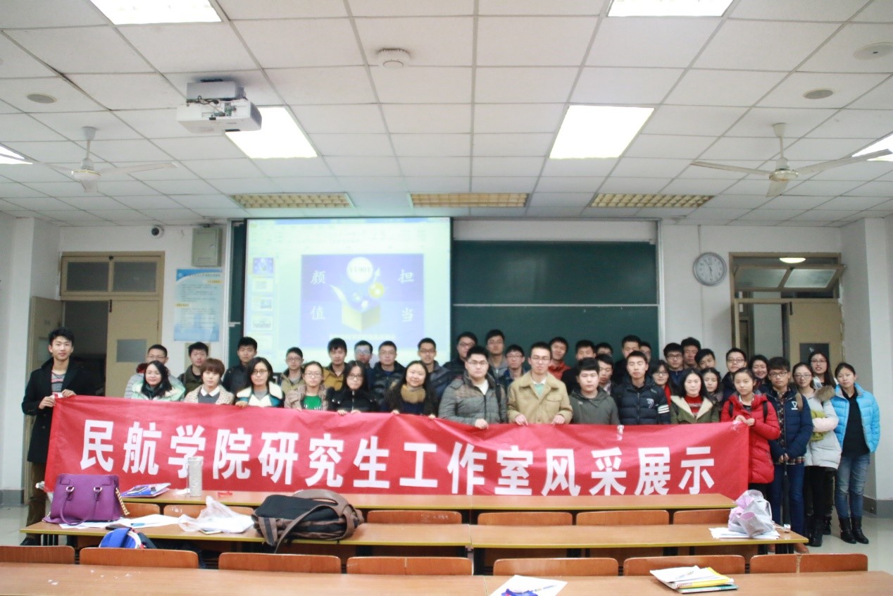 活动中,来自学院空域评估实验室、可靠性与适航技术研究中心、航空器健康管理研究室、飞行模拟与先进培训工程技术研究中心、健康监测与维修技术实验室、机载设备与机电综合实验室、民航软科学实验室的学生代表,分别从科研方向、师生风采、集体活动等角度进行了展示,为大家呈现出了一个又一个丰满的工作室形象。人气儿最高的11303B、工作能力最强的11501B、最有气质的11503B、最会玩儿的11601A、科研能力最强的11601B、团队人数最庞大的11507、颜值最出众的11901……给在场的同学们留下了深刻的印象,引起了大家强烈的共鸣。