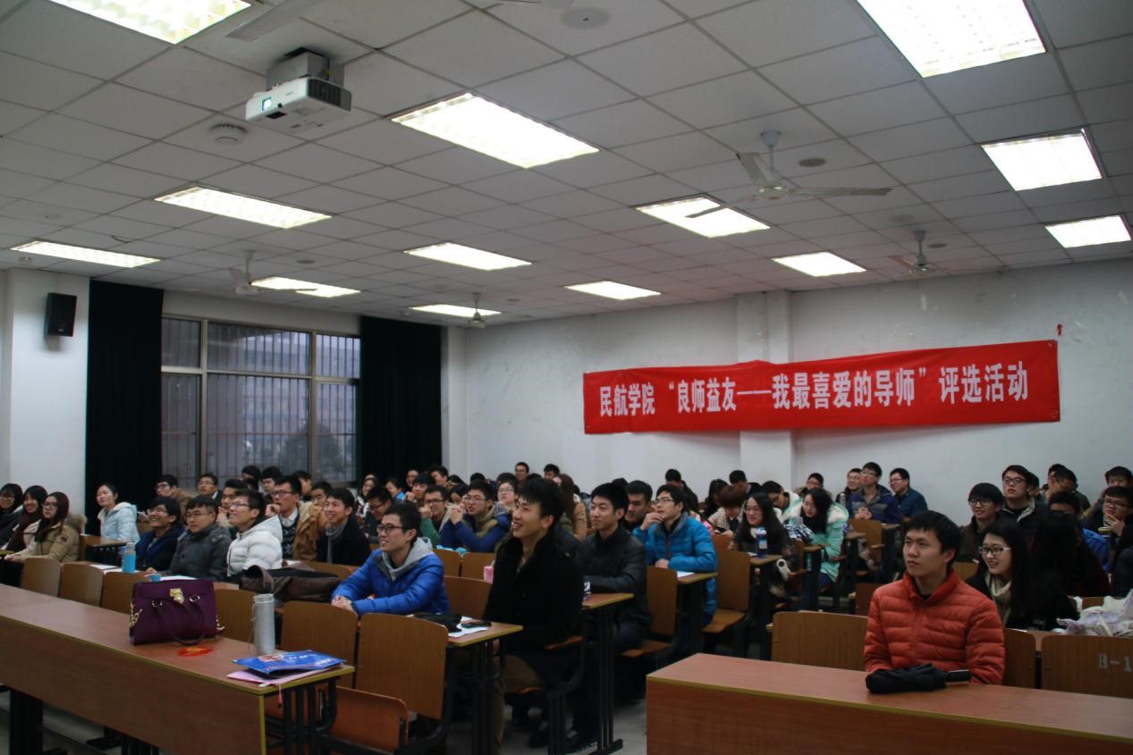 活动初始环节为“我最喜爱导师风采展示”,共有六位同学代表分别从工作与生活两方面介绍了心目中最喜爱的导师。从他们的ppt演讲中可以看出禁忌书屋 有着众多优秀的老师:桃李满天下,心系学生毕业后工作的胡明华老师;勤奋严谨却又被学生亲切称为“朱爷爷”的朱金福老师;科研行政两手抓,积极为学生着想的葛红娟老师;长着有特色的眉毛,不仅对自己专业,更对哲学也有研究的左洪福老师;作为国内航空器适航技术带头人的孙有朝老师;热心指导学生科创活动,分享人生经验的顾宏斌老师。这些同学的详细介绍,不仅给在座同学带来了老师们不一样的形象,同时也加深了同学们对身边老师的进一步了解。