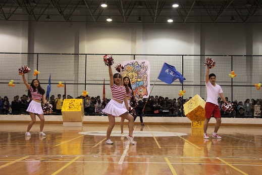 18点30分,比赛在大家的无限期待中正式开始,各学院大、小团体按照事先抽签所定顺序,依次出场。赛程过半,在大家的期待中,我院小团体闪亮登场。他们如同跃动的精灵,是热情与灵动的完美融合,将啦啦操的动感与律动演绎的淋漓尽致。就在大家还沉浸在我院小团体的精彩表演当中时,一群活泼开朗、笑容满面的男生女生们踏着小碎步跑入场中,我院大团体闪亮登场。开场一声响亮的“哈!”里充满他们的自信与属于民航人的骄傲;动感的节奏,配合轻盈的舞步,他们在展现独特的自我;男生们跑动的太空步,女生们甩动的马尾辫,突出着这一群帅哥靓女们的个性;男生女生搭档又充分展示出他们开朗、直爽的性格;表演结束时,传统项目“架人梯”则向大家演绎了团结、协作、互相信任的团队精神。