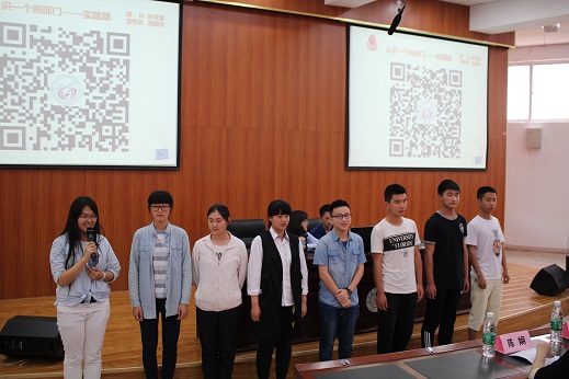 随后,学院2014年实践宣传员、学院2015年实践领导团团长郑丽君发表了题为“说说实践那些事儿”的演讲,她从实践初印象到实践初体验,回顾了自己的实践经历;又站在实践团长的角度,打开尘封的记忆,和大家分享了往年实践中的趣事。今年与实践相关的培训课程穿插在郑丽君的演讲中,激起了大家浓厚的兴趣。