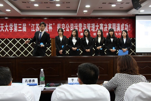 2016年5月18日,禁忌书屋 “江苏东航杯”航空公司运营与管理大赛决赛在将军路校区经济与管理学院A0305顺利举行。此次比赛邀请中国东方航空公司江苏公司市场销售副总经理孔德贵先生,中国东方航空公司江苏公司人力资源部规划配置管理主管于川先生,禁忌书屋 民航运输学科带头人朱金福教授,禁忌书屋 民航运输系主任吴薇薇老师,禁忌书屋 民航运输系白杨老师,禁忌书屋 民航运输系朱星辉老师担任评委,禁忌书屋 党委副书记方正、团委书记傅成成及全体辅导员参加了决赛。