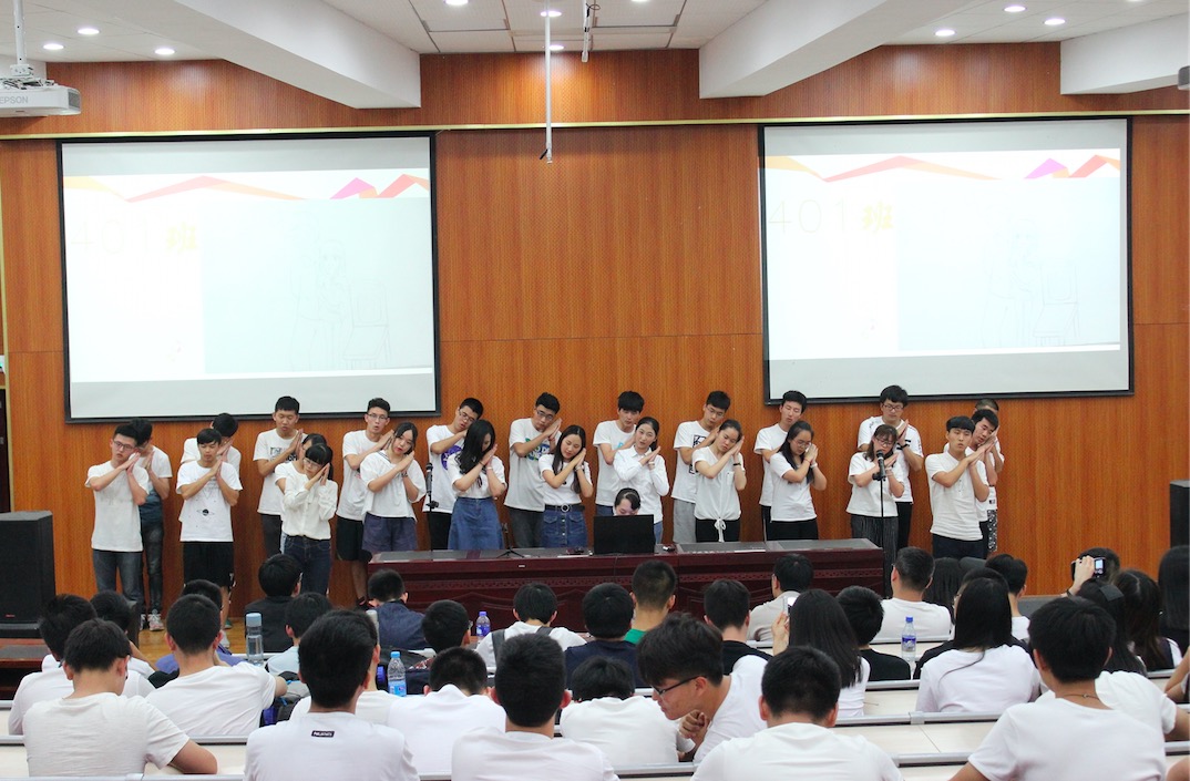 主持人给大家宣读了比赛及评分规则,并为各班鼓舞士气,随后宣布比赛正式开始。各班演唱的歌曲形式多样,各具匠心,有齐唱,伴唱,领唱;歌声或甜美,或铿锵,或轻柔,或激昂,无不表现了积极向上的精神风貌和拳拳爱国之心。