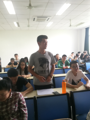 本次主题班会主要围绕两个主题进行。首先是关于学风探讨的问题。老师和同学们就学习过程中存在的问题进行一一列举,大致有学习热情的有待提高和对于课程学习的具体应用两大问题,并及时对此逐个提出了解决策略。同时,老师也对即将到来的暑假规划和大二、乃至大三的出国修学计划做了一系列的讲解。