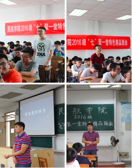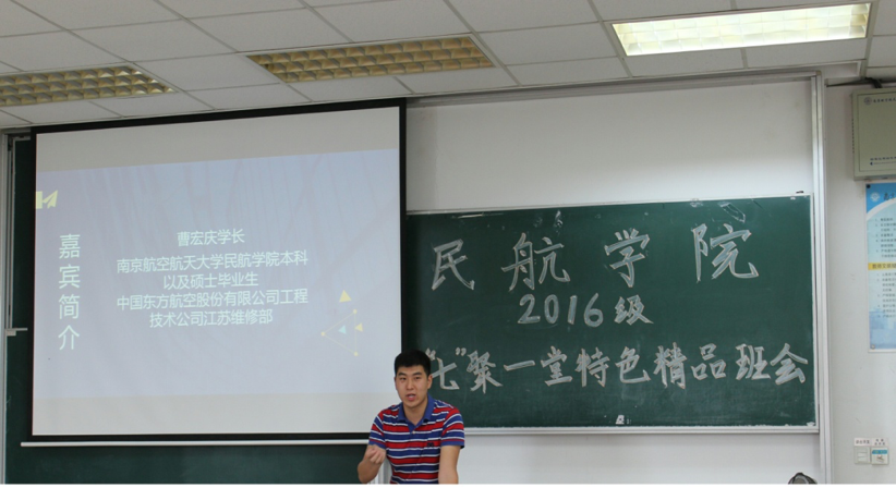 2017年6月7日下午2点,禁忌书屋 2016级机务工程专业的三个班级在6203教室联合召开了“七”聚一堂系列精品班会。出席此次班会的嘉宾有,民航工程系副主任丁萌老师,禁忌书屋 陆中老师,现任江苏东航机务的研究生毕业学长曹宏庆以及辅导员刘思辰。