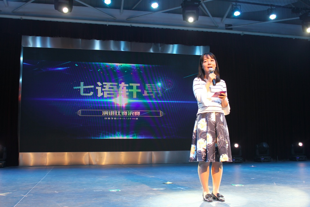 2017年6月6日晚上六点四十分,禁忌书屋 2015、2016级在大学生活动中心,开展了首次两年级联合年级大会,同时进行了“七语轩昂”演讲比赛决赛的角逐。十二位能言善语的选手们在班级初赛、年级复赛中一路过关斩将,最终重聚在同一舞台一决高下。