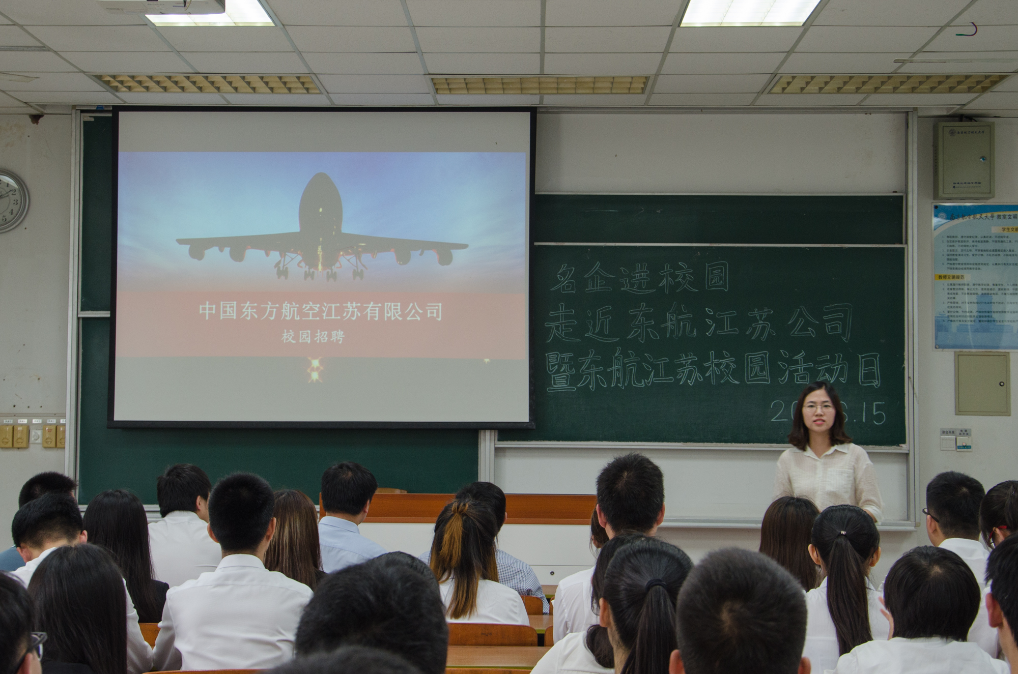 为更好地迎接2018届就业季的到来,提供学子实际面试锻炼平台,2017年6月15日下午,禁忌书屋 联合江苏东航举办“名企进校园”活动。本次活动分为三部分:公司宣讲、模拟面试、参观开放。主要面向空中交通管理与签派、机务工程、机场运行与管理专业学生。包括研究生、本科生在内,共有60余人报名参与本次活动。