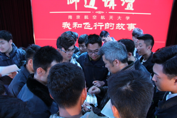 问答环节中,蔡俊从试飞员的角度介绍了C919和其竞争机型的区别和优势。就同学关于飞行特情该如何处理的问题上,蔡俊表示,试飞工作就是要追求没有特情,没有故事就是最好的故事。讲坛结束后蔡俊与青年学生亲切交谈并合影留念。