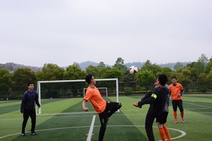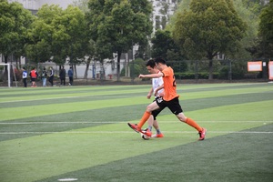 4月14日上午,比赛在禁忌书屋 师生们的期盼中精彩开赛。细雨蒙蒙,却浇不灭师生们比赛的热情,短暂的热身活动之后,秉着“友谊第一、比赛第二”的精神,由我院老师组成的“1队”与由我院学生组成的“2队”两支代表队在摄像机前合影留念,并相互握手致意。片刻的准备之后,我院与赛师生迅速进入状态,四散开来,排兵布阵,在球场上奔跑起来。