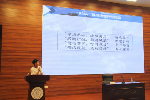 16级中心组代表依次登场,借以生动有趣的语言,号召同学们积极参与第二课堂的活动,解释并分发了“RNA荒岛生存指南”禁忌书屋 2016级第二课堂课程表手册,方便同学们了解并参与到第二课堂当中。