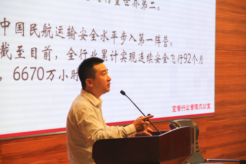 之后,第一位校友,民航局空管行业管理办公室的邹国良校友,为同学们展示了民航现状,以及民航体系中的各个组成部分以及相关部门,从自身的经历与民航数十年的发展的角度,讲述中国民航如何从无到有,如何一步一步成为民航大国,并进一步给师生们讲述了成为民航强国的梦想。