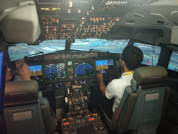 在波音上海培训中心,禁忌书屋 代表团与中国民航大学代表团一道,首先进行了三站式参观体验。团队代表分别观摩了787模拟客舱特情处置以及舱门操作,学习了737MAX驾驶舱仪表操作,体验737MAX全动模拟机的着陆操作。