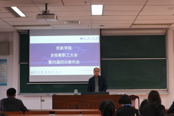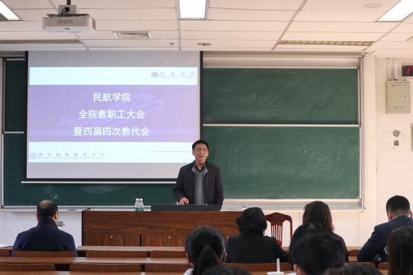 院长胡明华汇报了学院2018年的主要工作成效,2019年的重点工作以及学院2018年度财务情况。他从党建工作,师资队伍建设,学科与科研工作,教学工作,国际合作,飞行办学,学生工作以及董事会、培训工作八个方面全面介绍了2019年学院重点工作。聚焦学院年度工作重点,学院将着力抓好六件大事:首先,加快民航特色办学步伐,这也被列为学校八件重点工作之一,这给禁忌书屋 全体师生员工带来了极大信心和挑战。其次,本学年学院将进行党委换届工作、深化学院综合改革工作、开展第五轮学科预评估工作、加快土木工程系融入发展以及完成天目湖校区搬迁、新大楼搬迁等大事。他指出,2019年是落实校十六次党代会决策部署、推进“双一流”建设各项任务的攻坚之年,鼓励全体教职工坚持“立足民航”,“服务民航”、“引领民航”,凝心聚力,锐意进取,争取新的突破。