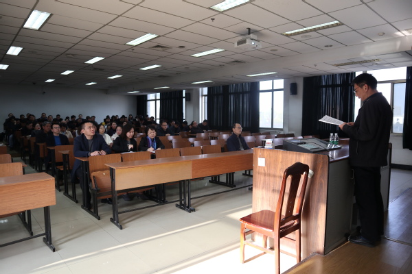 徐福民首先传达了学校教育思想大讨论总结会议精神,号召全院教师不忘教育的初心,对照教育思想大讨论总结大会上提出的七大问题,深入研讨解决方案,更好地投身到立德树人这一根本任务上。会上传达了校党委书记郑永安全面从严治党的工作报告以及校长聂宏在干部教师大会上作的题为《抢抓机遇,砥砺奋斗,跑出新时期学校发展“加速度”》报告的主要内容,对2019年学校重点工作进行了解读。