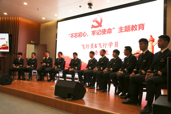 下午,三个支部党员与民航/飞行学院2019级东航飞行学员在天目湖校区巡天楼一楼报告厅开展“不忘初心,牢记使命”主题教育交流会。