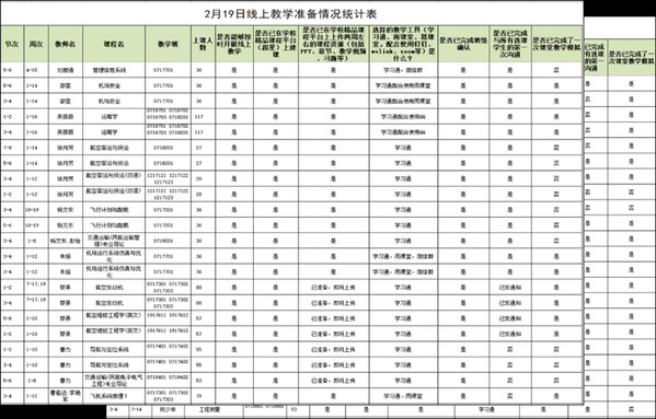 自学校2月8日发布“延期开学、线上教学、创新模式、保证质量”的新学期教学工作安排以来,学院严格按照学校要求,第一时间研究学院教学工作实际,部署学院新学期教学工作。2月9日发布《民航/飞行学院关于做好2020年春季学期教学的通知》,成立工作小组,对线上教学、实验教学、毕业设计等教学活动做了详细和周密的安排。明确实施负责人制度,布置教学办、各系主任、辅导员工作任务,确保协同高效完成各项工作。