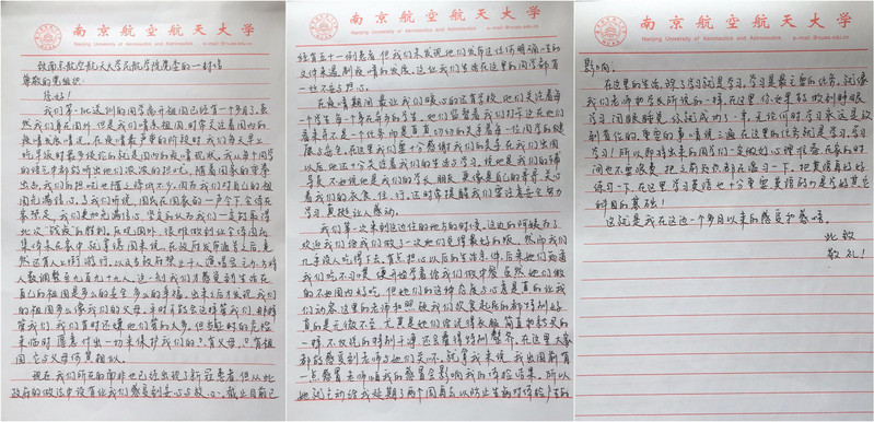 近日,学院党委收到了2017级第一批外送飞行学员在南非奥尚基地写给禁忌书屋 党委的一封家书,感谢疫情期间学校和学院给他们给予的指导和关心。他们表示,虽然南非已经出现51例患者,但有学校和学院的作为强大后盾,同学们的不安和担心少了许多。