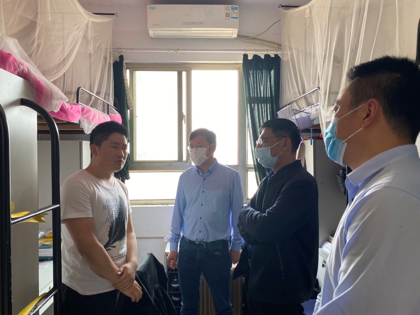 430日,徐福民、孙建红、李和新一行前往学生宿舍,看望返校同学,了解学生返校后的生活状况。在学生宿舍,徐福民关切询问同学们的身体情况,并鼓励大家保持良好的心态,积极投入学习和工作中。孙建红告诫同学们要珍惜在校的时光,不负光阴,不负韶华,努力学习知识,扎实掌握本领,认真完成毕业设计。李和新提醒同学们要多通风,做好寝室卫生。他强调现在是季节交替的时候,注意气温变化,及时增减衣物。