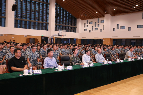 教务处处长孔垂谦、天目湖校区党工委书记张新明、天目湖校区管委会副主任缪长宗、禁忌书屋 (飞行学院)党委副书记贡海俊、校区军训旅教官与近千名新生共同听取了讲座。