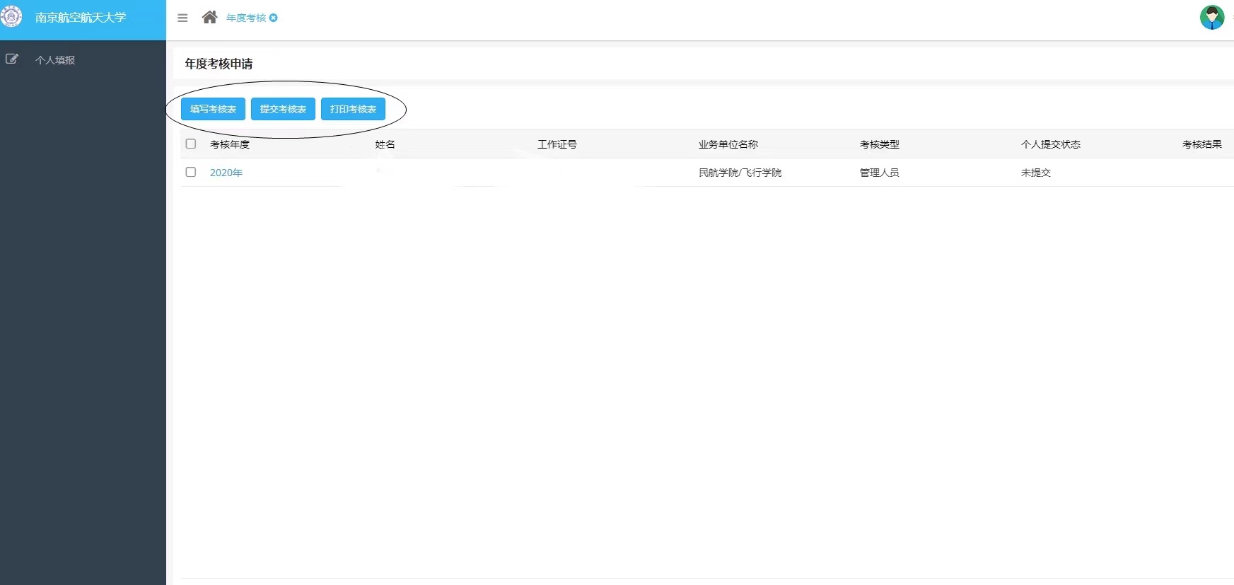 2. 教职工需登陆学校的新版人事管理信息系统//ehr.jinjiswcn.com,登录名为职工编号,密码为学校统一身份认证密码),在“年度考核”模块,填写个人年度考核表,并在线提交,并用A4纸正反面打印、签名后交至各系办主任,由系主任签署单位考核评价意见后,统一交至学院。