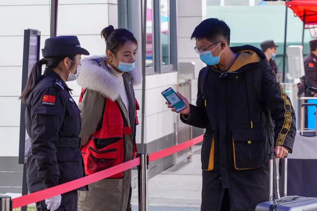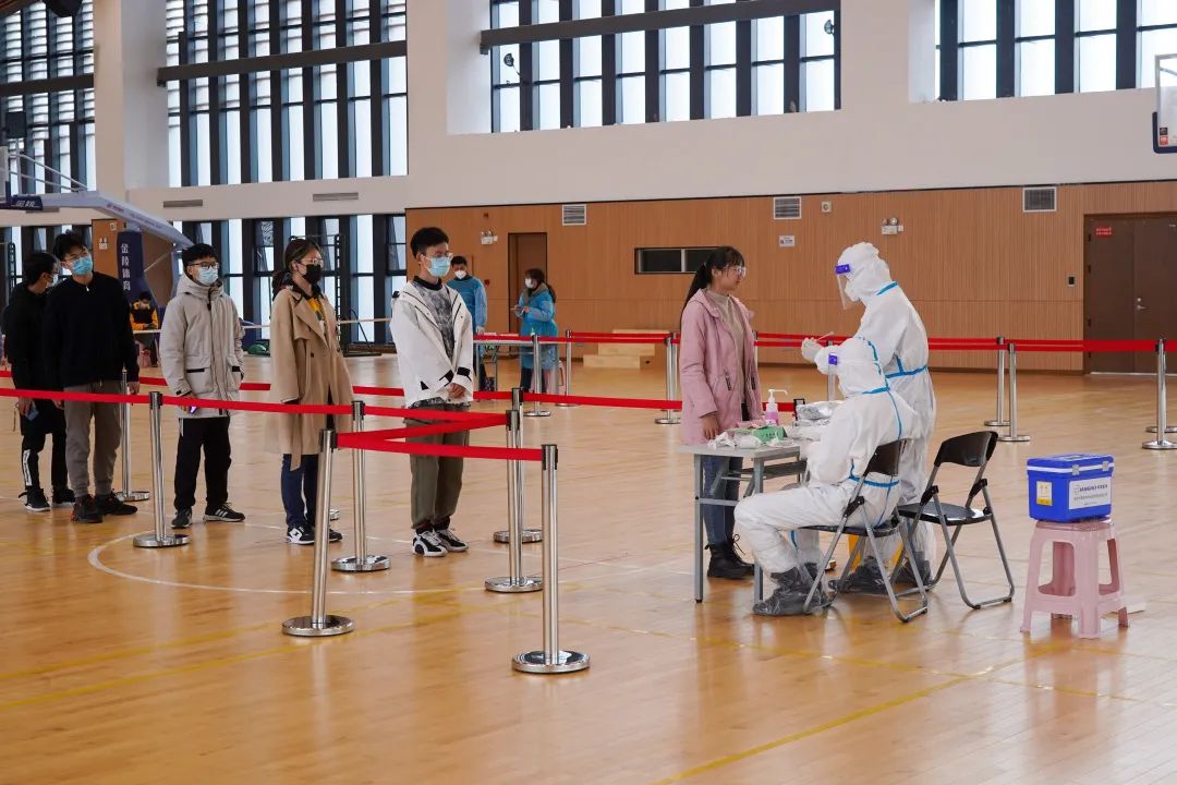 返校现场,井然有序。学员遵守返校相关流程要求,配合做好健康码、行程码的检查和体温检测等环节。
