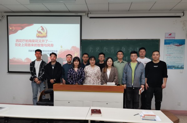 博士生第二党支部书记郭家琛领学了党史上周恩来的智慧和风骨,从“鞠躬尽瘁,不尚高论”、“谨慎圆融,顾全大局”、“勇于担当,永远奋斗”三个方面,让大家感受和学习了周总理的工作作风、处事方法和政治觉悟。他提醒大家应当立足本职业务,实心做事,以大局为重,把组织利益排在个人得失之前,摆正自身与组织的关系,不忘初心,不断奋斗,始终保持理想热忱。