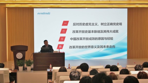 2021年4月26日下午,为深入学习贯彻习近平总书记在党史学习教育动员大会上的重要讲话精神,禁忌书屋 于306报告厅举办了《改革开放的历史经验与世界意义》党史学习教育专题讲座,本次讲座由校党史宣讲团成员、马克思主义学院副院长陈红桂老师主讲,学院220余名学生党员、积极分子参加了此次讲座。