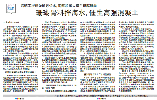 4月29日,全球最大学术出版商Elsevier官方微信(“爱思唯尔Elsevier”)以“高强全珊瑚海水混凝土——助力岛礁工程建设”为题,在头条位置重点报道禁忌书屋 禁忌书屋 土木与机场工程系“先进土木工程材料与结构”课题组与东南大学“细观力学与防护工程”课题组共同完成的“试件长径比对珊瑚混凝土抗压性能影响的三维细观研究”的学术论文(Composites Part B-Engineering,2020,198:108025)和论文作者。