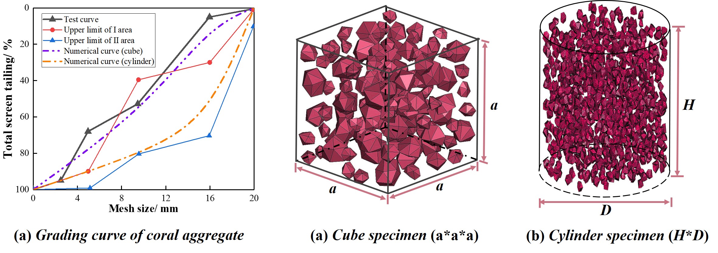 在细观层次上,混凝土通常被假定为一种由粗骨料、砂浆及二者之间的界面过渡区组成的复合材料,细观各组分的力学性质直接或间接地决定了混凝土材料的宏观力学性质和破坏模式,深入研究混凝土细观结构特点及其力学性能,建立细观结构和宏观力学性能之间的关系,是混凝土力学性能研究的重要内容之一。近年来,随着计算机技术的发展,国内外学者逐步开始尝试建立包含随机骨料模型的三维混凝土细观模型,以此来探究不同荷载作用下混凝土力学响应及损伤破坏机理。混凝土中的粗、细骨料的总体积占混凝土体积的60~80%,其中粗集料约占到60%,构成混凝土的主要空间骨架结构,粗骨料的形状、尺寸、体积和强度等参数直接影响着混凝土的基本力学性能。常用的粗骨料根据形状主要分为碎石和卵石骨料,前者表面粗糙、棱角尖锐,是工程中常见的粗骨料材料。为了模拟混凝土中粗骨料的随机分布特征,有些文献采用不同形状的几何模型对骨料进行数值模拟,从二维空间的圆形、椭圆形和多边形发展到三维空间球体、椭球体和随机多面体。然而,上述骨料模型大多属于规则几何模型,无法准确反映实际骨料的空间随机几何特征及混凝土的细观结构,在混凝土破坏形态模拟及破坏机理分析方面也存在着较多的局限性。因此,在综合考虑计算精度和效率的前提下,该研究成果提出一种新颖的混凝土三维随机细观模型算法,基于自编Fortran和APDL程序,使用ANSYS软件建立一种具有随机形状和尺寸的三维随机颗粒模型,来模拟破碎珊瑚骨料的空间随机特征。