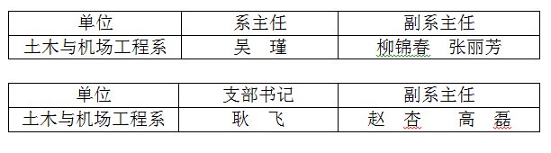 经土木与机场工程系全体教师和党员民主推荐、支部充分酝酿、党委考察,学院党委会讨论研究,确定了新一届土木与机场工程系行政班子人选和新一届支部委员人选,现予以公示: