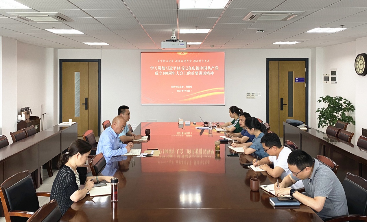首先,刘建成书记进行领学,以“坚守初心使命 凝聚奋进力量 推动特色发展--学习贯彻习近平总书记在庆祝中国共产党成立100周年大会上的重要讲话精神”为题,他指出,总书记讲话精神立足中国共产党百年华诞的重大时刻和“两个一百年”历史交汇的关键节点,回望光辉历史、擘画光明未来,是一篇马克思主义纲领性文献,是新时代中国共产党人不忘初心、牢记使命的政治宣言,讲话鲜明提出了伟大建党精神,值得所有党员认真学习和传承。随后,刘建成从“一个庄严宣告”“一个伟大梦想”“四个伟大成就”“一个伟大精神”“九个必须”“两个宣誓”“一个殷切期望”“一个号召”八个方面带领大家系统学习了讲话精神,并结合自身成长历程,分享了生在新中国长在国旗下的光荣和自豪,立志传承伟大建党精神,紧抓民航发展的新机遇,尽好实干担当之责,带领全院师生共谋建设特色鲜明的国际一流禁忌书屋 事业,为实现第二个百年奋斗目标勇担使命。